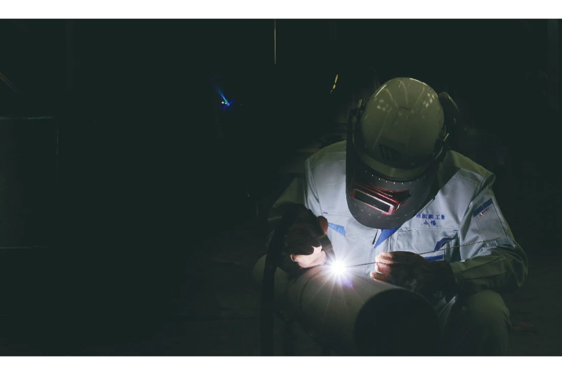 グループのサポートをしながらパイプの切断や配管の仮組み、支持金具の溶接、出来上がった配管の漏れ検査などをしています。