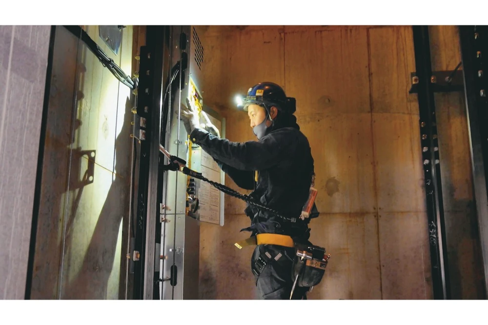 私たちの仕事は、そのエレベーターをゼロから組み上げ、完成させるプロフェッショナル。ミリ単位の精度が必要とされる現場で、設置するレールの垂直を出す、ワイヤーやドアの取り付け、動力装置の設置など、建築・電気・機械の知識を駆使しながら、現場ごとに異なる条件に対応していきます。