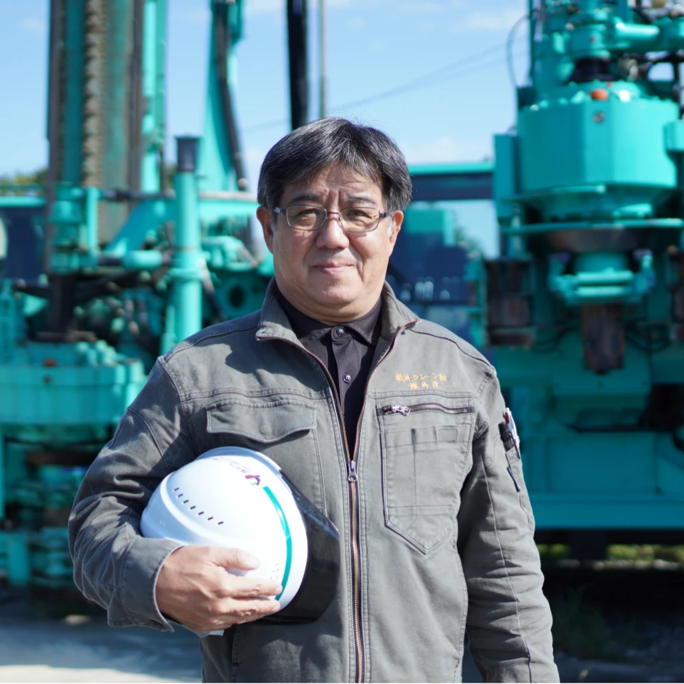 - 建物を安定して建てるために、大型クレーンやショベルカー、ユンボなどの重機を操作し、地盤の強度を高める作業をしています。地盤改良は目に見えない部分ではありますが、建設物の基盤となる重要な役割を担っており、非常にやりがいがあります。建物の安全性に直結する重要な仕事です。