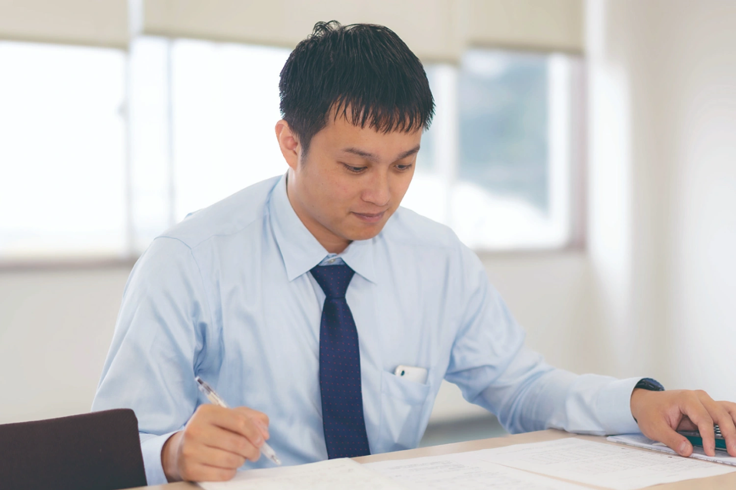 当社の営業事務は、お客さまからの電話対応をはじめ、在庫の注文対応や受注後の加工指示、運送手配、仕入などの手配全般を担当しています。お客さまと多く会話することで、迅速に情報を入手し、データ分析を行うことも業務の1 つです。