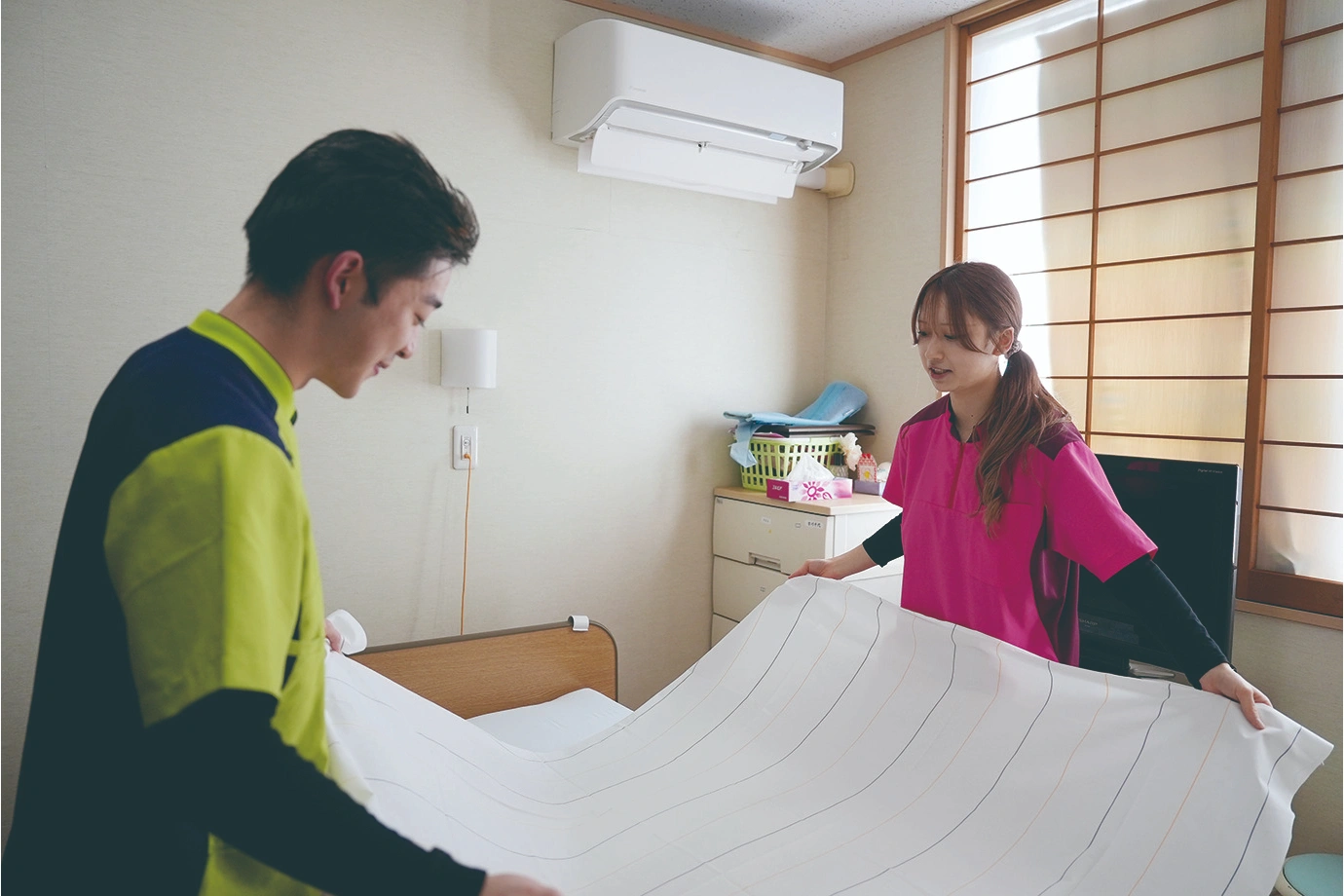 入職後は、資格取得のための研修を受講していただきます。受講費用は全額法人負担で、なおかつ出勤として受講できるため、お休みもしっかり確保できます。また、ご自宅から通勤が難しい方には、近隣のアパートを提供し、初年度1 年間は家賃無料でお住まいいただけます。2 年目からもそのままお住まいいただけ、家賃・更新料は自己負担となりますが、「住宅手当」を支給し、社員の生活をサポートしています。