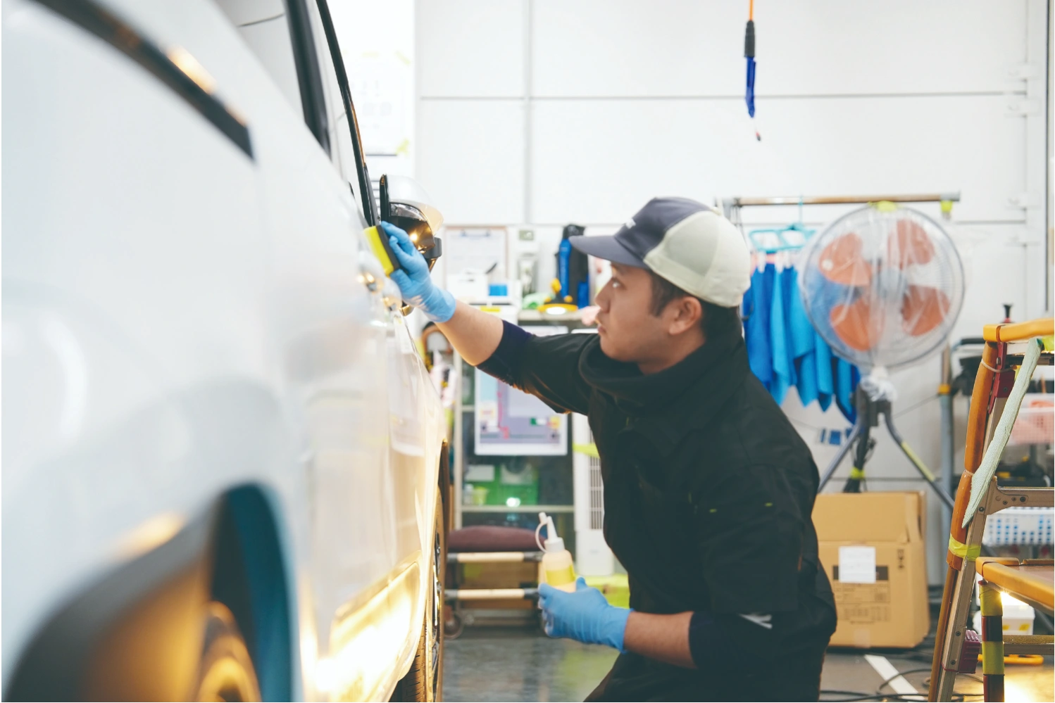 かっこいい車を自分の手で仕上げる仕事です。フィルム施工・新車オプション取付・ボ