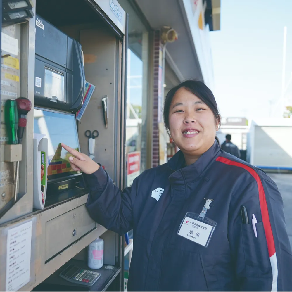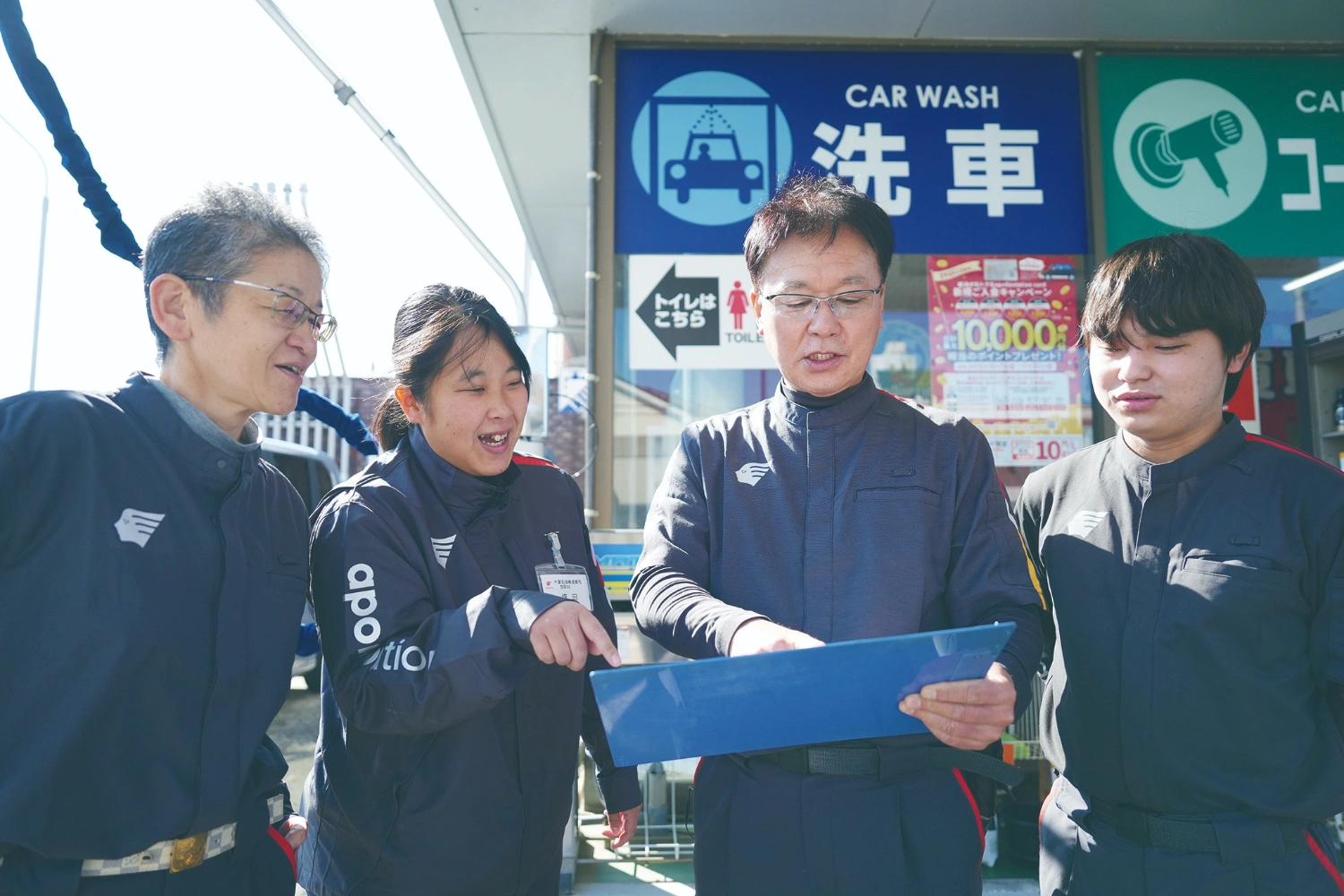 当社では、スタッフに長く働いていただくため、資格取得やスキルアップをサポートしています。例えば、入社後には「危険物取扱者」や「自動車整備士」などの資格を取得していただくための研修制度を完備。また、お客さまと接することで、正しい言葉遣いや提案力、接客スキルが自然と身に付きます。そして、永年勤続制度として、長年勤めてくださったスタッフに表彰を行なっています。