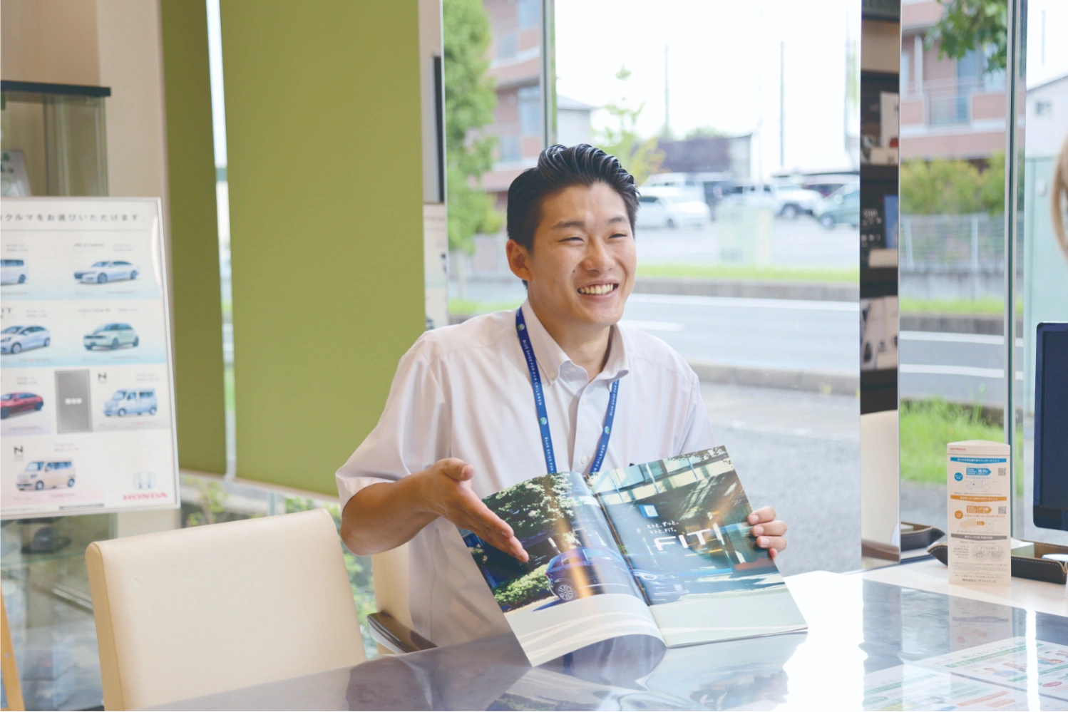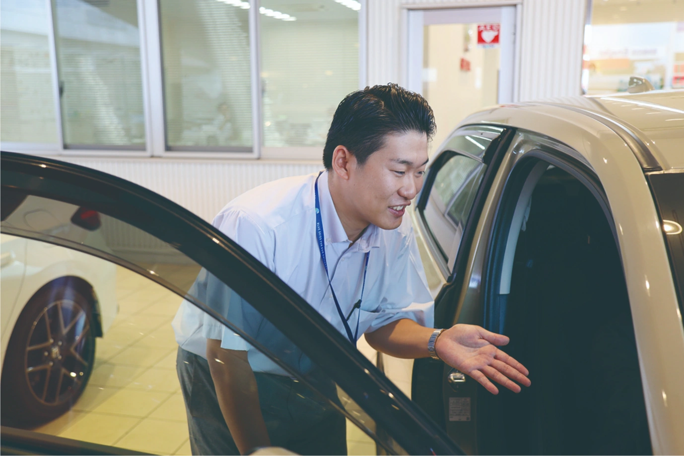 新車の販売、自動車保険のご案内などが主な業務内容です。ご来店されたお客様のご案内だけではなく、電話対応や書類の作成なども行なっています。実際にお客様のご自宅へ訪問し、お車に関するご相談を受けたり、新車のご紹介や車検・点検のご提案もしています。