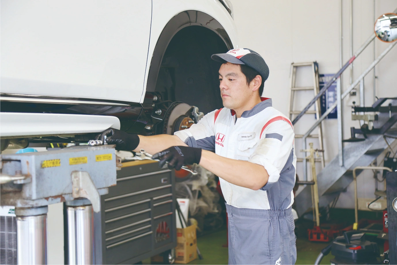 車検や点検などといった車の整備を担当しています。これらはお客様の安全と安心を守る大切な仕事です。基本的なチェックを怠ると事故につながるため細部まで徹底的に確認します。整備の技術はもちろん、それ以上にお客様の安全を守るという責任感と集中力が要求されます。