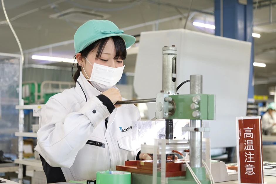 当社は、ロボットや生産設備がスピーディーに動いて製品を作り上げます。しかし、ロボットを動かすのは『人』です。人が悩み考え、発想し、ノウハウを蓄積し、人が成長していくことが質の高いモノづくりにつながると考えます。