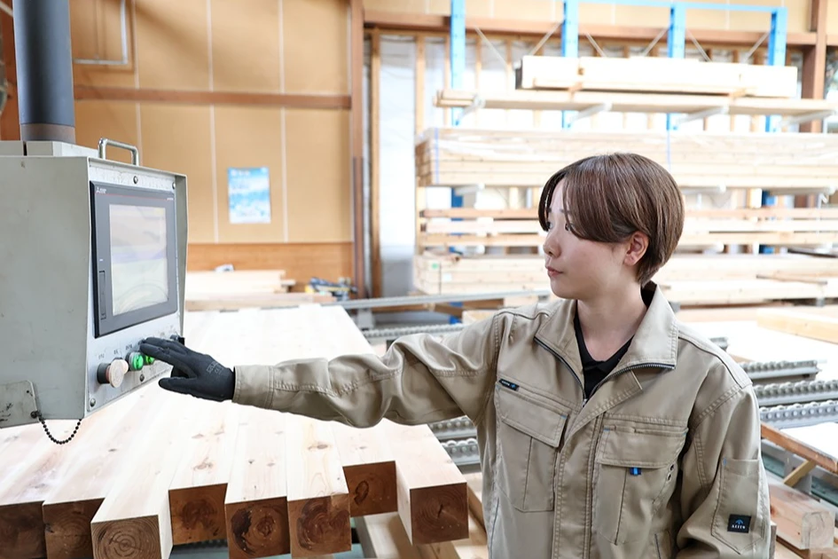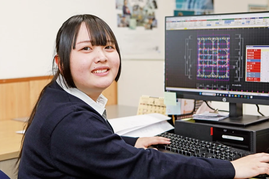CADオペレーターが依頼された設計図に従って加工に必要な部材を一本一本データ入力し、綿密な打ち合わせを重ねて細かなご要望をお伺いします。お客様による加工確認、ご承認をいただいた後、加工機械用データを作成し、それぞれの加工機でお互いにチェックしあいながら精度の高い製品に仕上げます。自分が手掛けた建物が実際に形になり、長く残るモノづくりに携わることで達成感を味わえるやりがいのある仕事です。