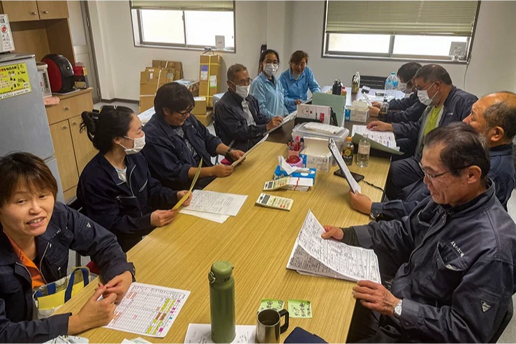 各農場で朝ミーティングを行い、情報と注意事項を共有化、本日の作業内容と担当分担の確認を行います。