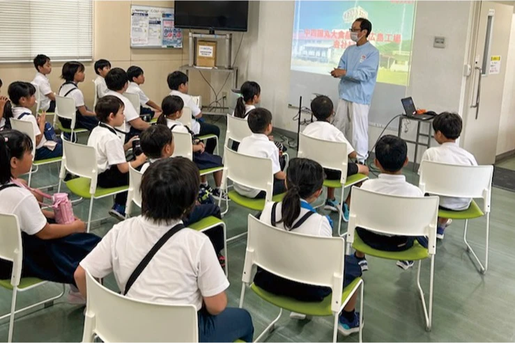 小学校の社会学習の一環で、工場見学を行っています。工場見学を通じて、広島工場のことをよく知ってもらっています。