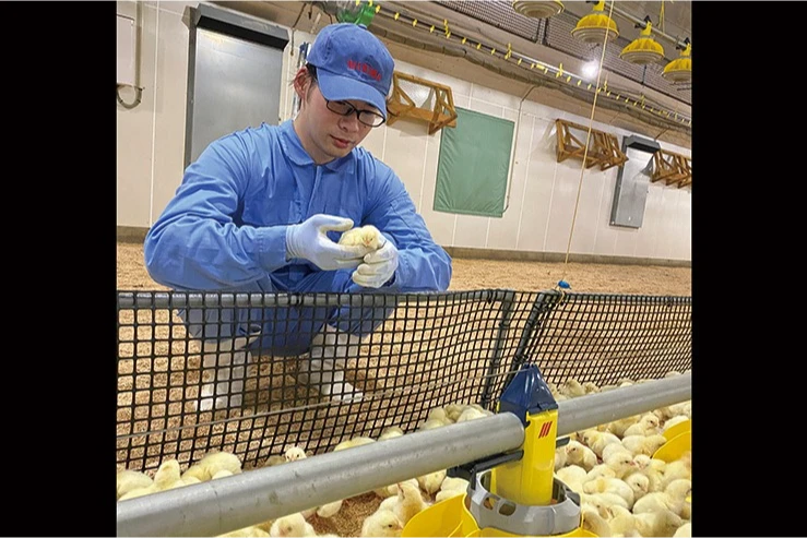 卵からふ化させた雛を大切に育てます。温度湿度などの徹底した管理で、鶏にストレスを与えない最適な環境を目指します。45日で立派な鶏に!