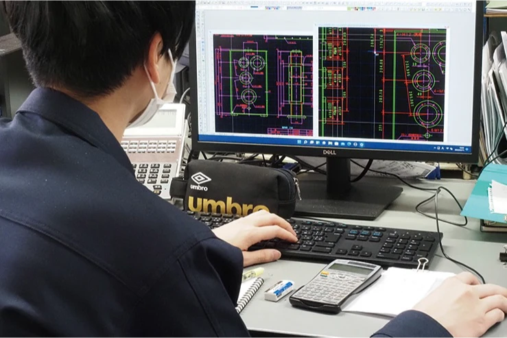 設計から始まり、完成まで社内で一貫した製作をしています。主力のハッチカバーをはじめ、電動ウインチなど船の甲板で使われる機械を作っています。