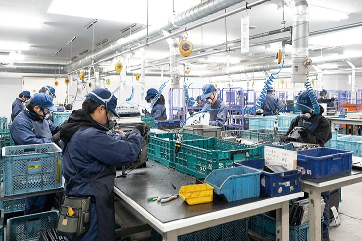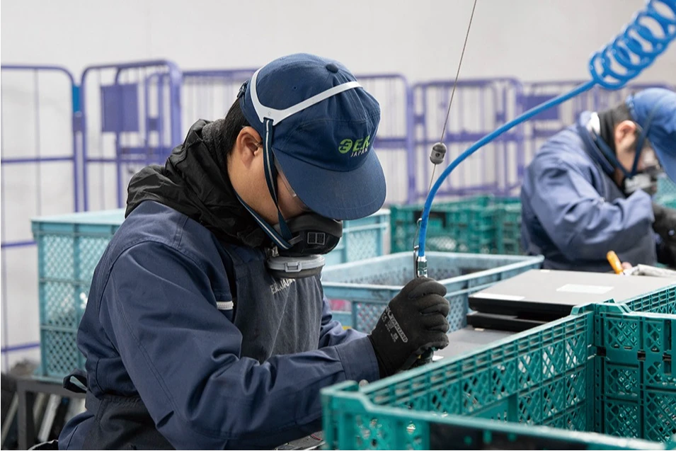 集まった物品を品種や素材ごとに分別し、リサイクルの精度を高めます。また、バッテリーを内蔵した製品は火災の危険があるため、慎重に取り外して処理します。