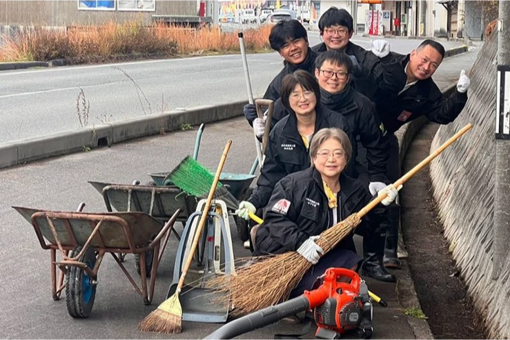 月に一度は地域の歩道の清掃活動!きれいになると気持ちいいよね。広島県から『アダプト活動団体』として認定を受けているんだよ!(アダプト活動:地域を養子のように見たて、清掃や美化を行う活動)