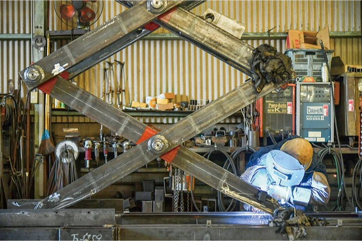 作業計画や設計製作仕様書に基づいて、材料を運び出しリフトテーブルの組立を行っています。