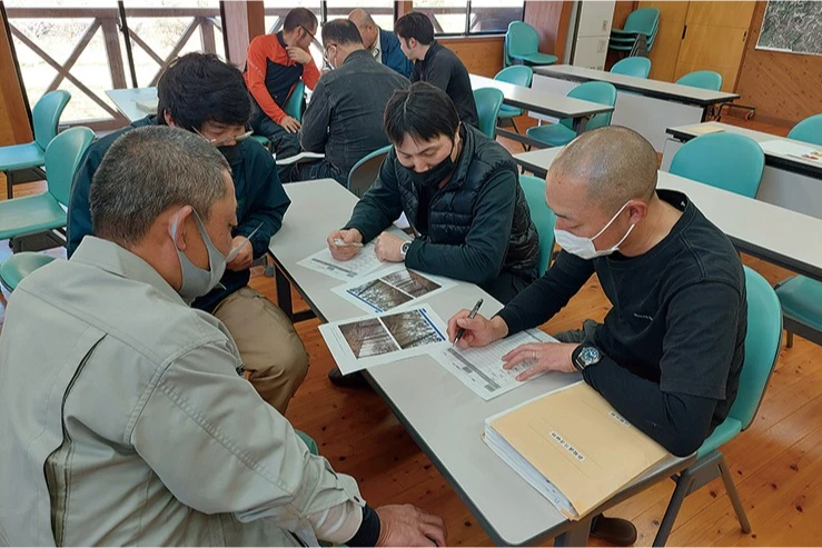 より良い森林作りを目指し、自分達が実施した作業現場の検証や、見えない部分の確認などをしています。