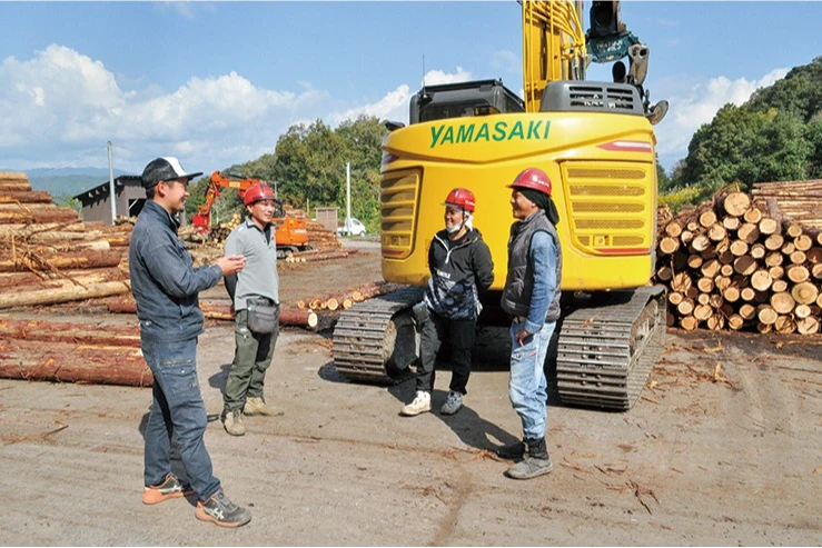 ⼭崎⽊材ではより働きやすい環境を作るため、高性能林業機械の導入、IT化・DXの取り組みによる負担の軽減、資格取得支援や社員研修会で人材育成にも取り組んでいます。
