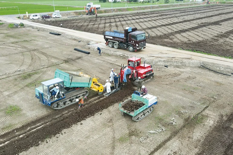 当社は長年にわたり、石狩・空知管内において主に農業土木工事や一般土木工事を行っています。特に農業土木工事は農作物の生産基盤を支える重要な仕事であり、一般土木工事は公共事業として社会資本を整備する必要不可欠な仕事です。当社の仕事は、工事全体のスケジュール調整や現場の安全管理、工事の品質管理などをする施工管理です。工事を進めていく上で、様々な苦労もありますが、完成した工事は地図に残り、新しい街の風景となり、達成感を感じられる仕事です。近年の建設業を取り巻く環境は目まぐるしく変わり、作業効率の改善を図るDX化や運転手の熟練度に関係なく自動で掘削や整形作業ができるICT建設機械などの新技術を導入して、作業時間の短縮や社員の負担軽減を図っています。早くから品質・環境・安全のISO規格を取得し、運用することで、発注者から信頼される工事を施工しています。