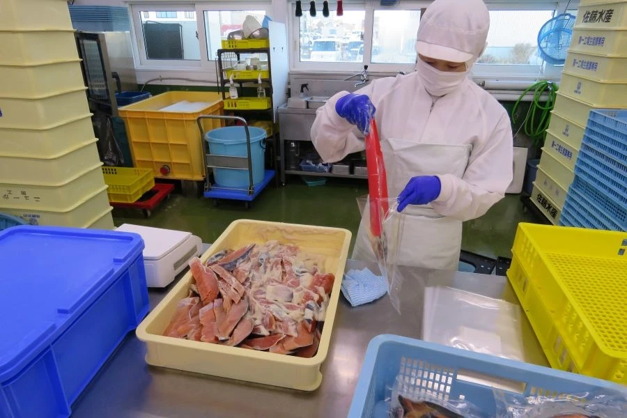羅臼など北海道各地の浜から直接仕入れた魚を、寿司ネタや加工食品、贈答用商品などに製造し、鮮度を維持したまま高品質の商品をお客様に届けています。切り身は全て手作業に行うことでお客様のニーズに合わせて商品を製造することができ、大きな信頼につながっていると思います。