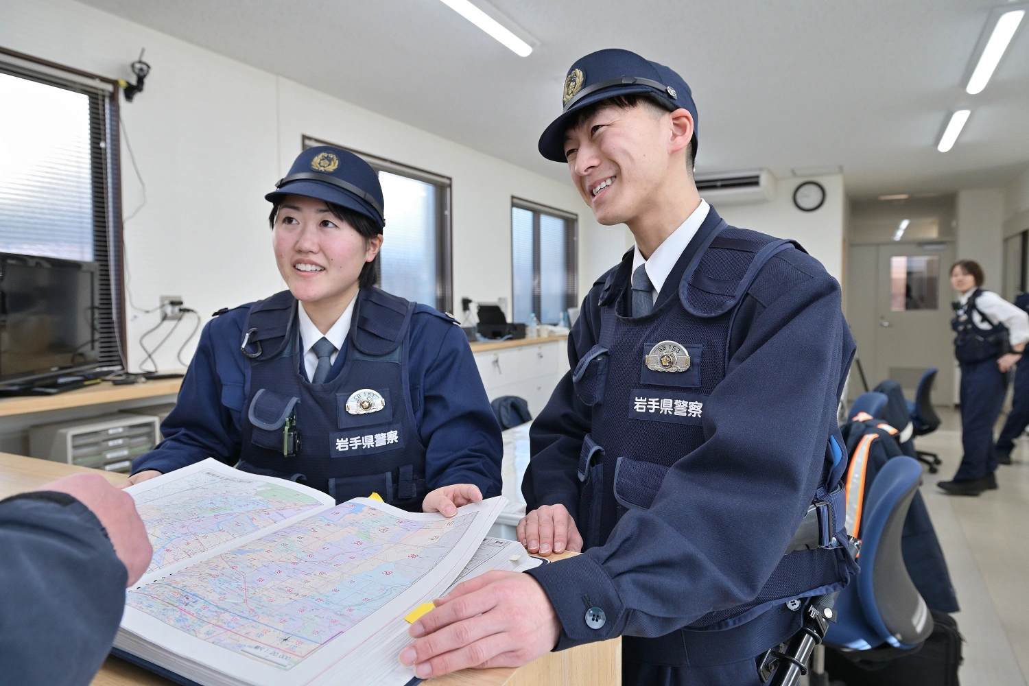 - 落とし物・拾い物の届け出受理、市民の方からの相談対応から事件事故の対応、事務仕事まで幅広い仕事をしています。