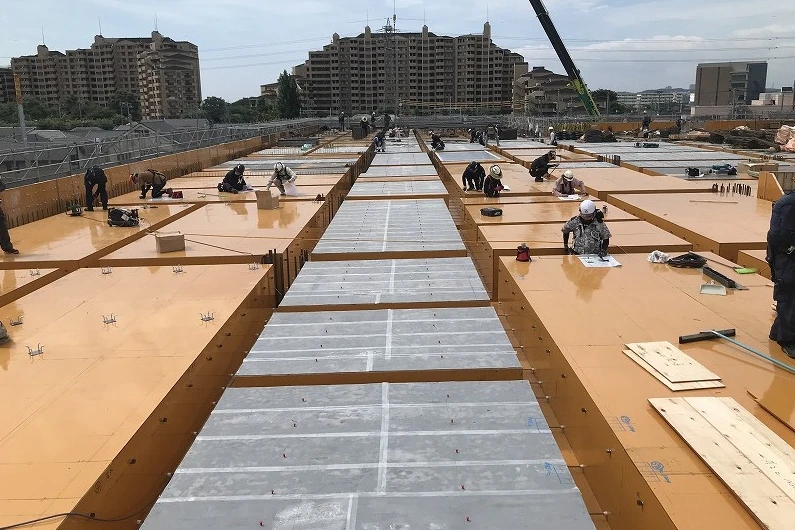 型枠工事とは、柱や梁、床の骨組みとなる鉄筋にコンクリートを流し固まるまでの間、その形を保持しておくための「型」をつくる工事です。