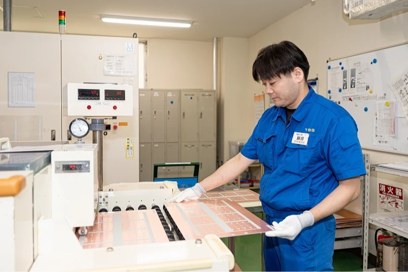専門的な知識が必要なイメージがあるかもしれませんが、私を含めて、入社後に製造方法などを学びます。入社後は研修期間を設けておりますので、安心してください。研修も若手主体で計画や内容を考えており、直近採用の若手社員の日々の成長には目を見張るものがあります。基板製造に関わる工程は多く製造プロセスも日々進歩しており、これからも先端開発の分野についていくため、若い皆さんと一緒に働けることを期待しています。