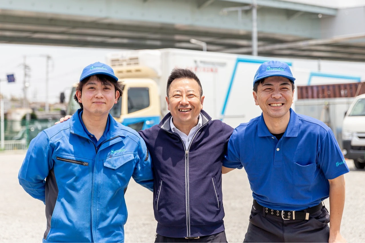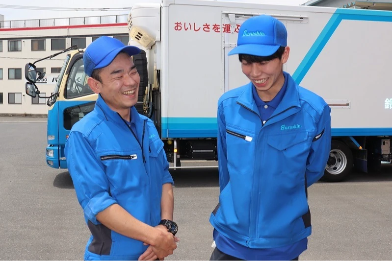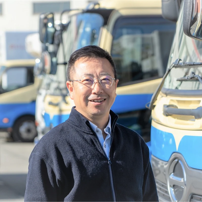 毎日、当たり前にスーパーには食品が並んでいますが、生産者から売り場に届き、皆さんが購入するまでには沢山の人が携わっています。そしてそれらを繋ぐことが私たちの仕事です。いわゆる裏方仕事と言われる仕事ですが、食を安定供給することは最大の社会貢献と考えて日々働いています。最近では、運送業が注目されニュース等で取り上げられることが増えてきました。物を運び、触れたりする運送業の魅力が多くの方に伝わればと思っております。トラックは小型車両から大型車両までイロイロとあり、免許取得のサポートもしています。