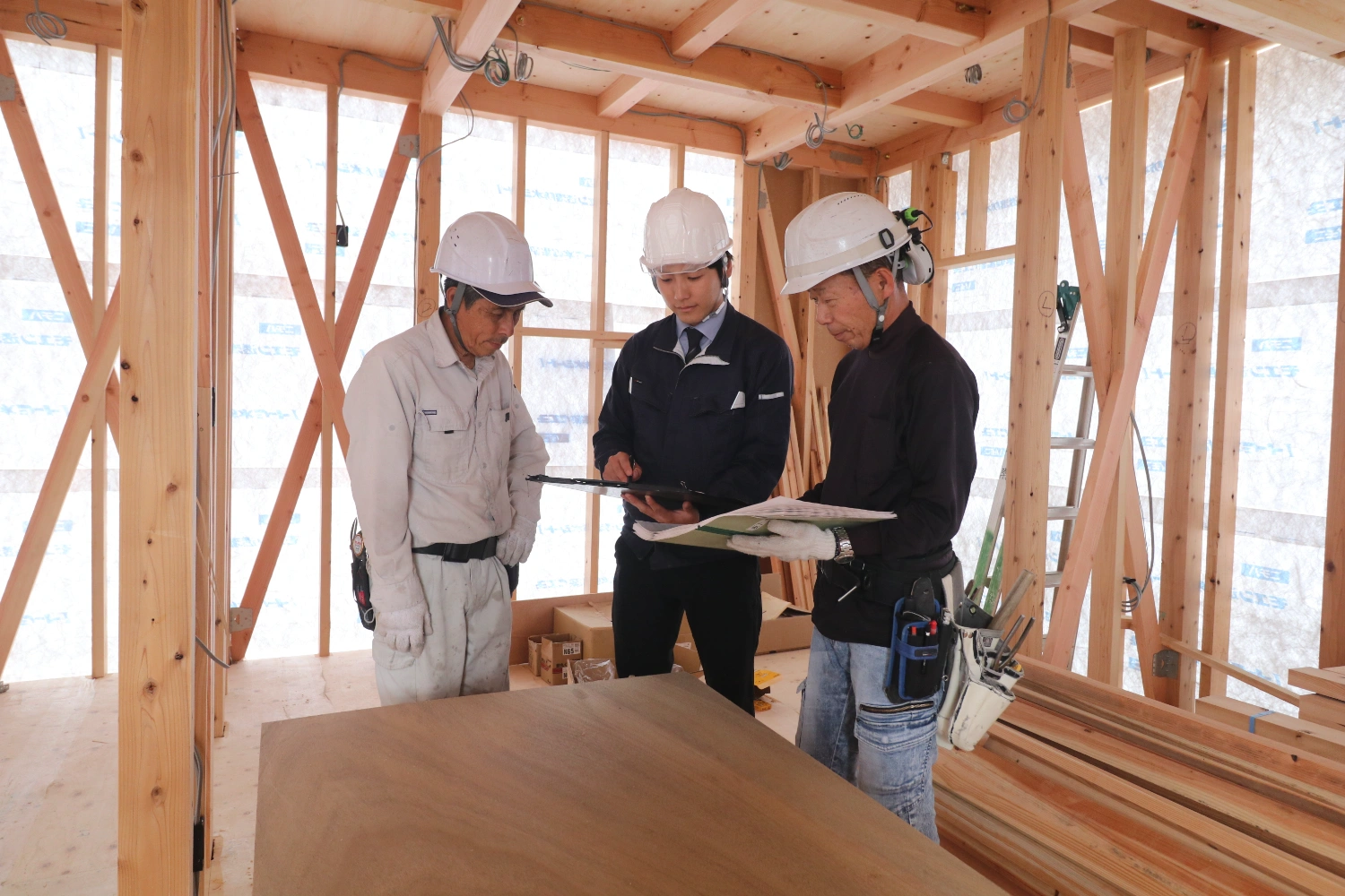 工務は設計に沿って見積もりや業者への発注作業、お客様と家の外壁や内装などを打ち合わせ→現場を管理していきます。