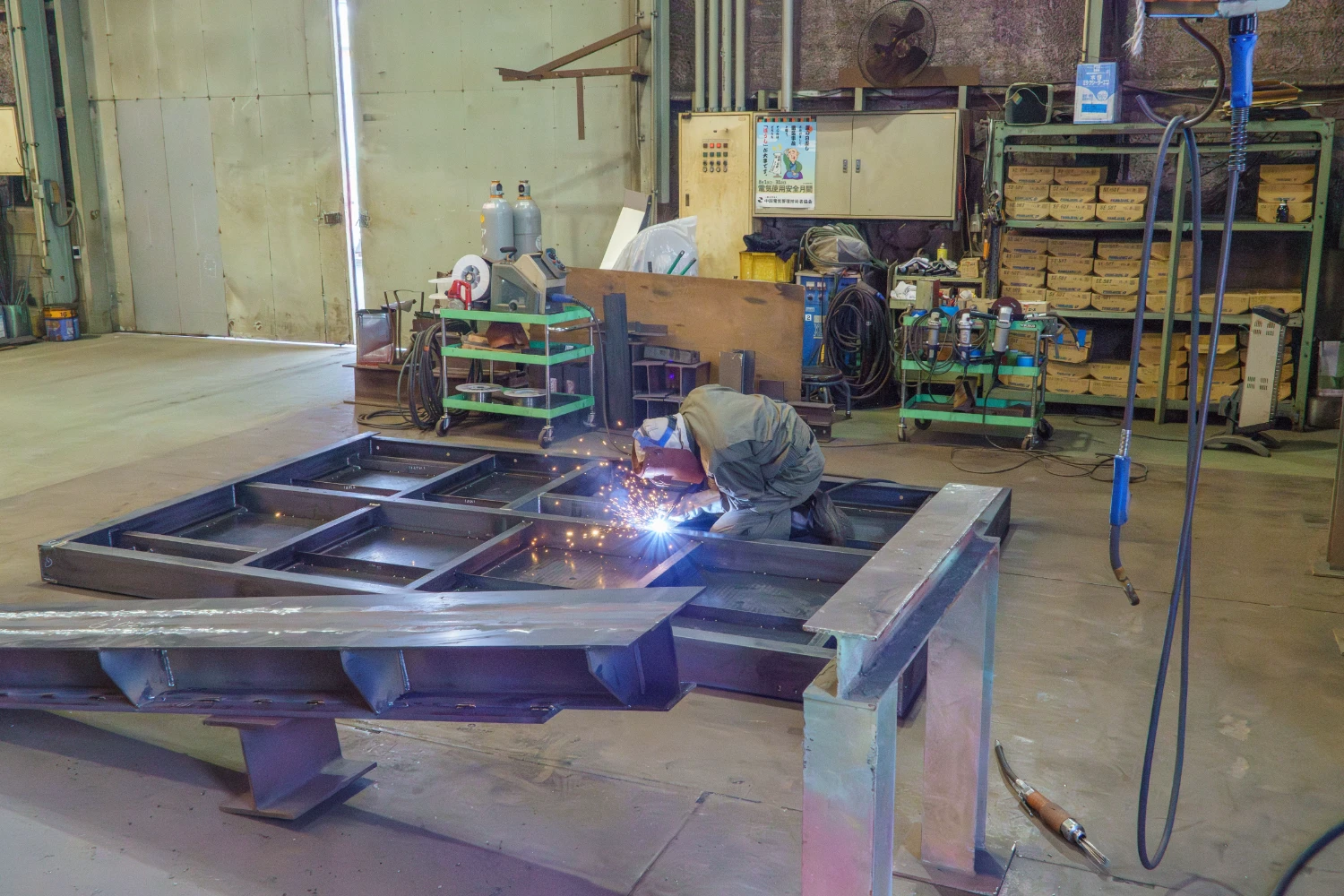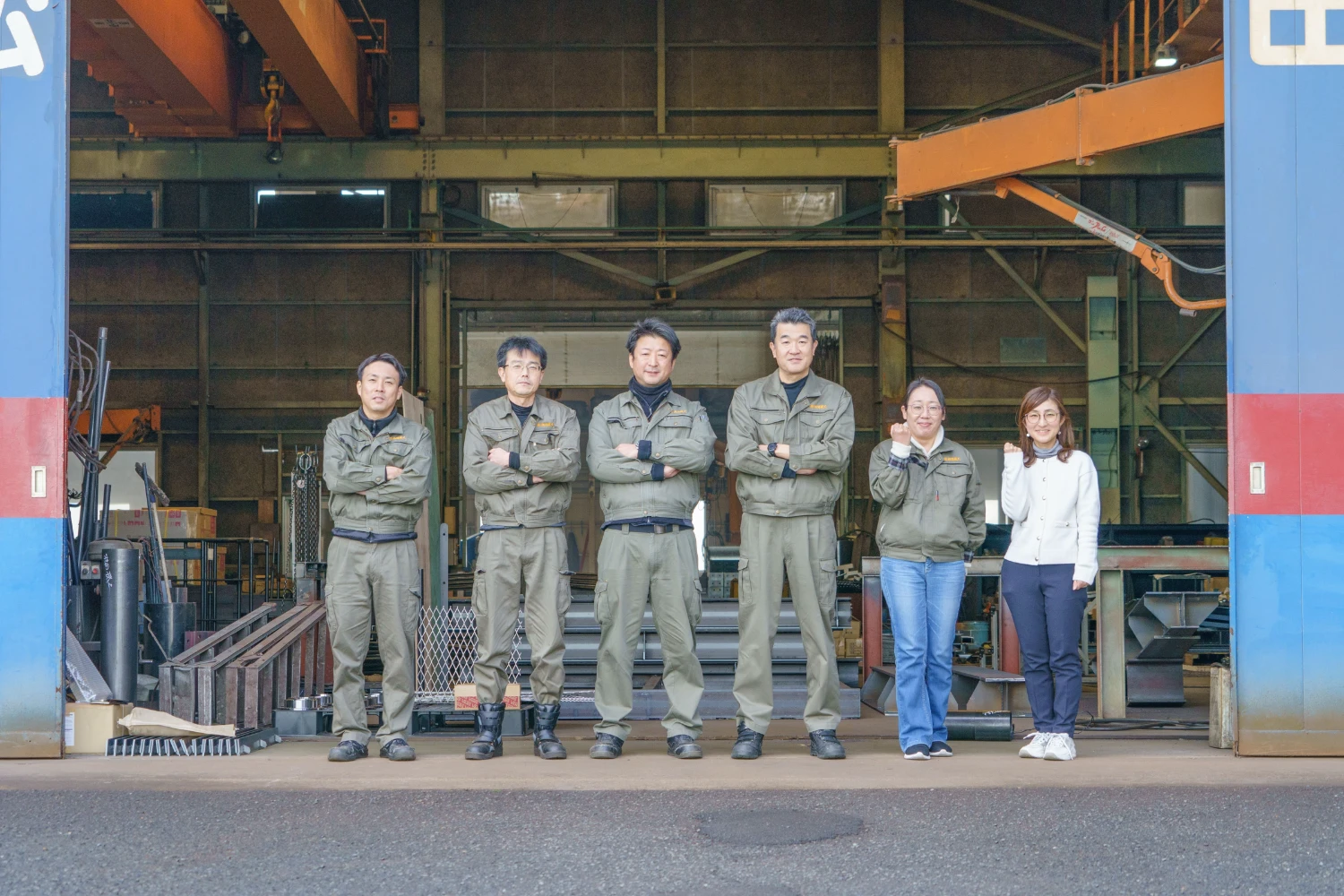 当社は、鋼板のレーザー切断・曲げ・ロールなどの加工、製缶・溶接、素地調整、塗装、仮組、検査まで自社一貫体制で行います。各種一通りの大型設備を保有しており、高品質で短納期を実現しています。大手企業と直接取引で、高収益を誇り、2 0 2 3 年7月に日工(株)東証 プライムのグループ会社となり、さらに安定した体制となりました。モノづくりを通じて社会 に貢献できるよう、社員一同頑張っています。