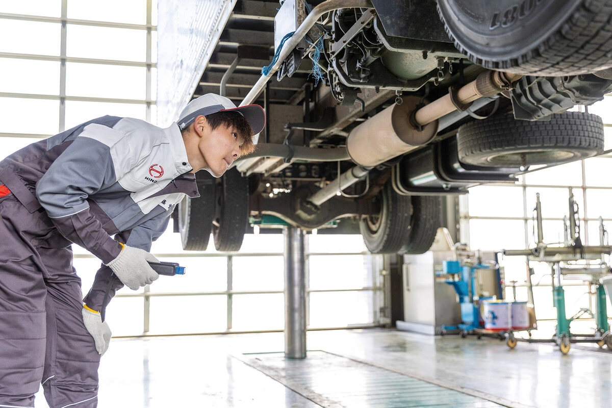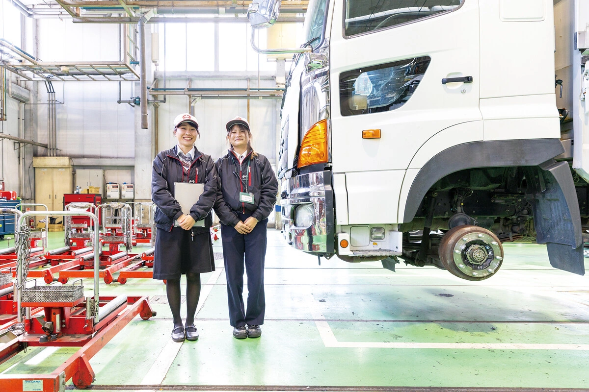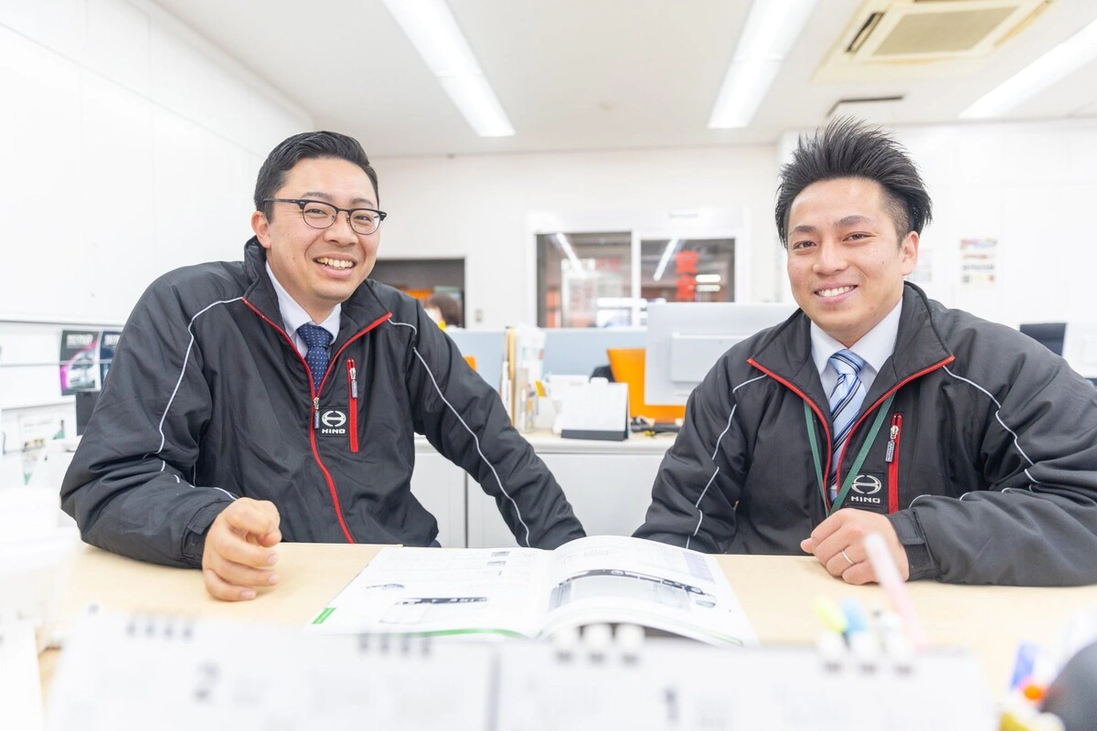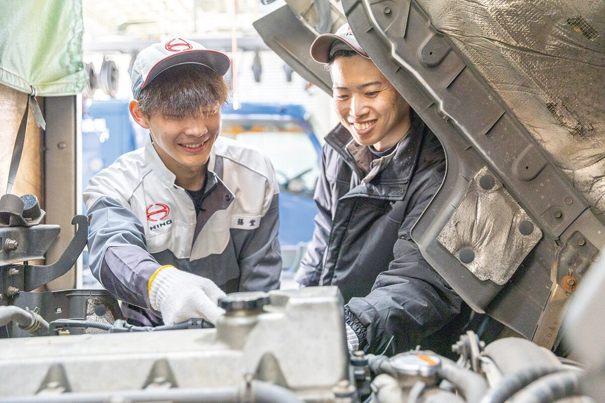 お客様の多様なニーズを的確に捉え、最適な一台をご提案するトラックの総合プロデューサーである「営業」、トラックの性能を最大限に引き出す高品質な部品を供給するエキスパート「部品」、そして、トラックの点検・修理からエンジンのオーバーホールまで、高度な技術でトラックを整備するプロフェッショナル「整備」。