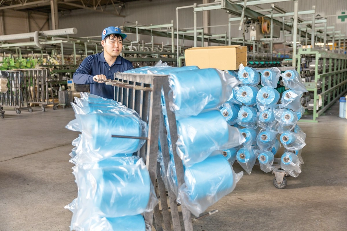当社は合成樹脂を使用した平らな糸「フラットヤーン」の製造を主軸にカーペットや人工芝、不織布等を一貫して生産するメーカーです。
