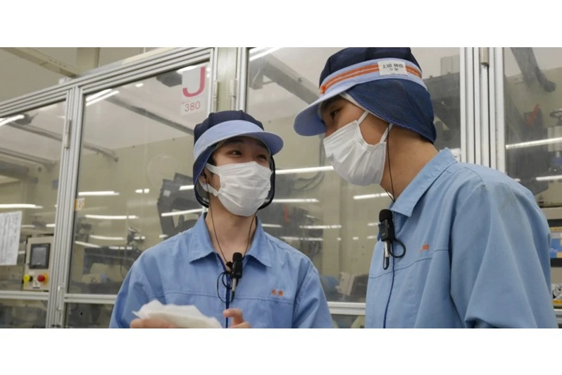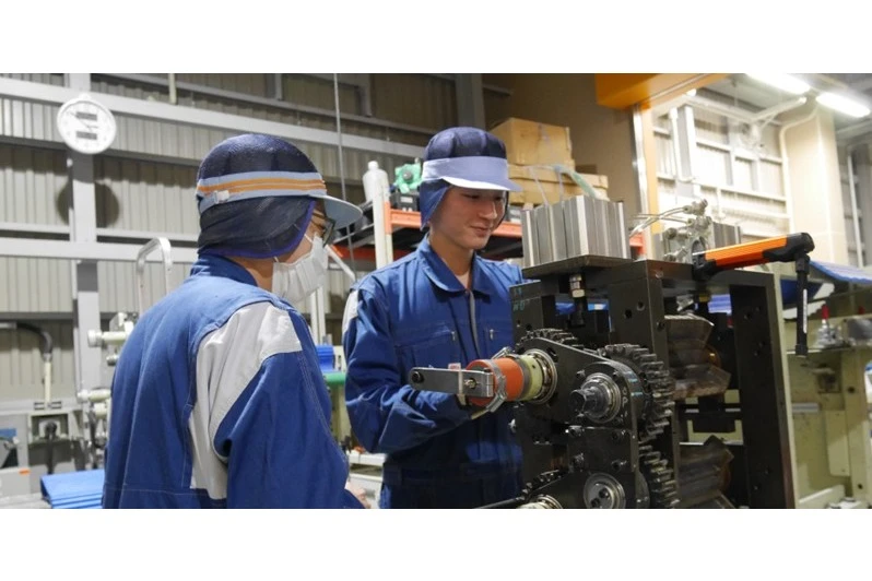 新入社員は帽子の色で分かるようにして、みんなで見守り育てます。先輩は面倒見がよく、社員の仲がいいのが自慢。