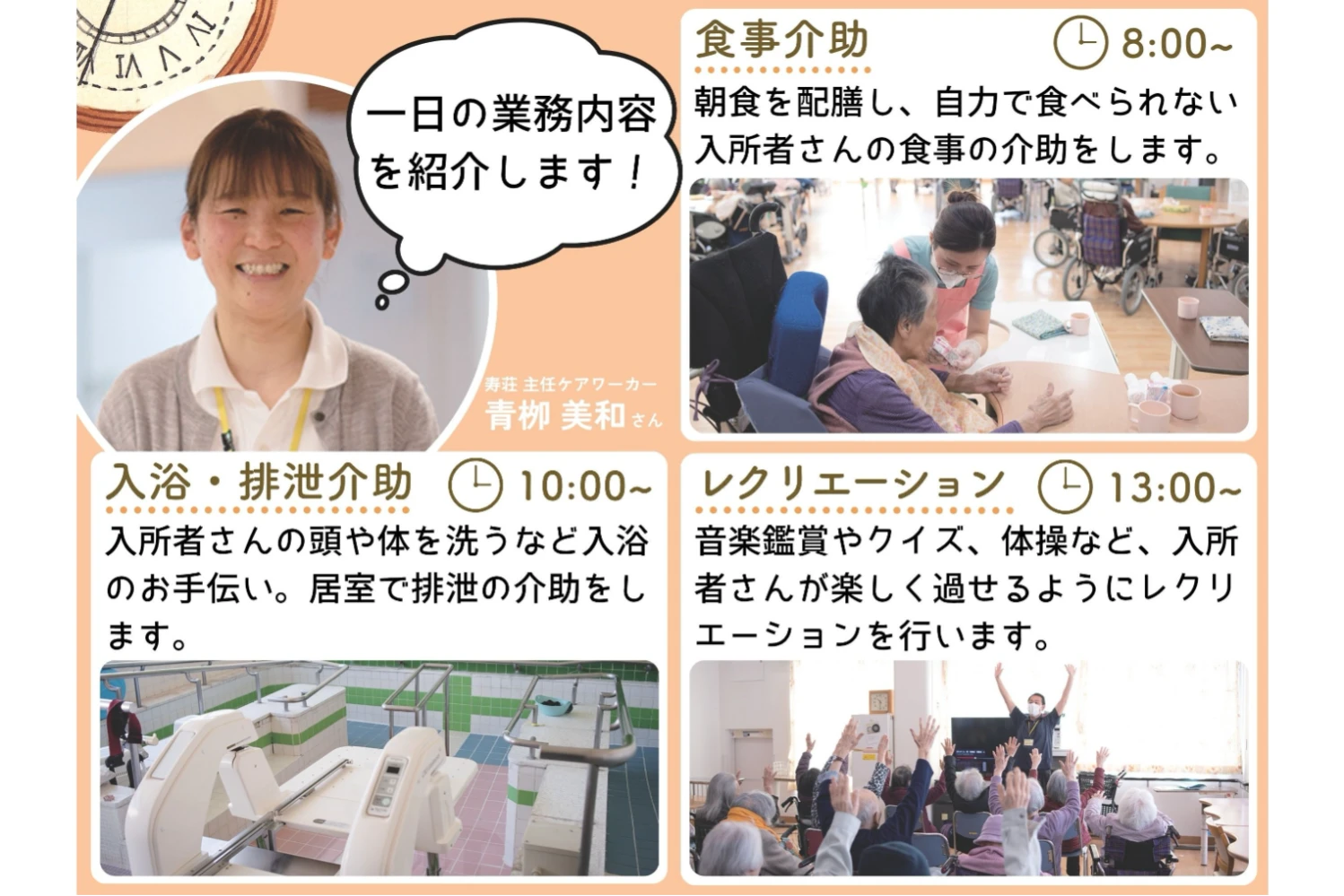 生活相談員として、入所者さんやその家族の相談や援助、援助計画の立案などを行なっています。
