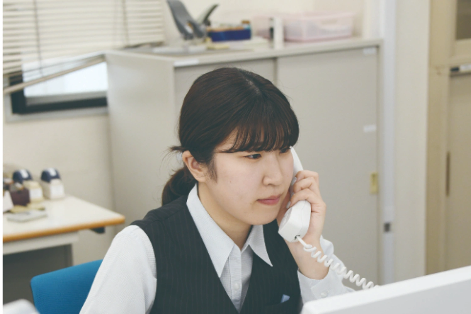 当社の営業事務は、お客さまからの電話対応をはじめ、在庫の注文対応や受注後の加工指示、運送手配、仕入などの手配全般を担当しています。お客さまと多く会話することで、迅速に情報を入手し、データ分析を行うことも業務の1 つです。