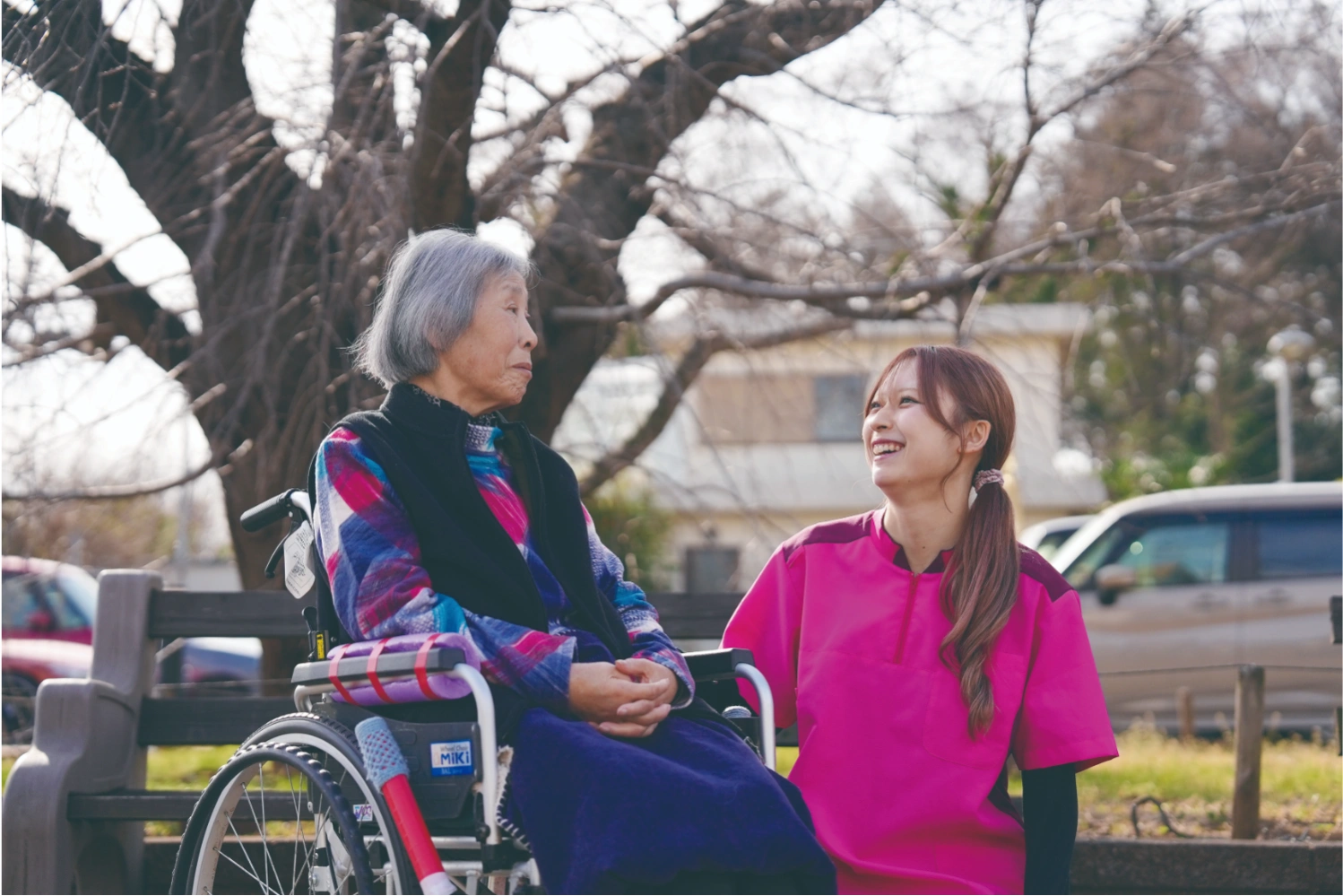 施設を利用する、介護を必要とされる高齢者の生活のお手伝い全般を担います。お着換え、整容、お食事、日々のアクティビティ、外出、お話し相手、入浴や排せつまで、必要な部分のサポートをします。長寿の里では、千葉県鎌ケ谷市、船橋市、市川市、柏市において、特別養護老人ホーム、ショートステイ、デイサービス、ケアハウス、サービス付高齢者向け住宅、住宅型有料老人ホーム、訪問介護、居宅支援センターを運営しています。