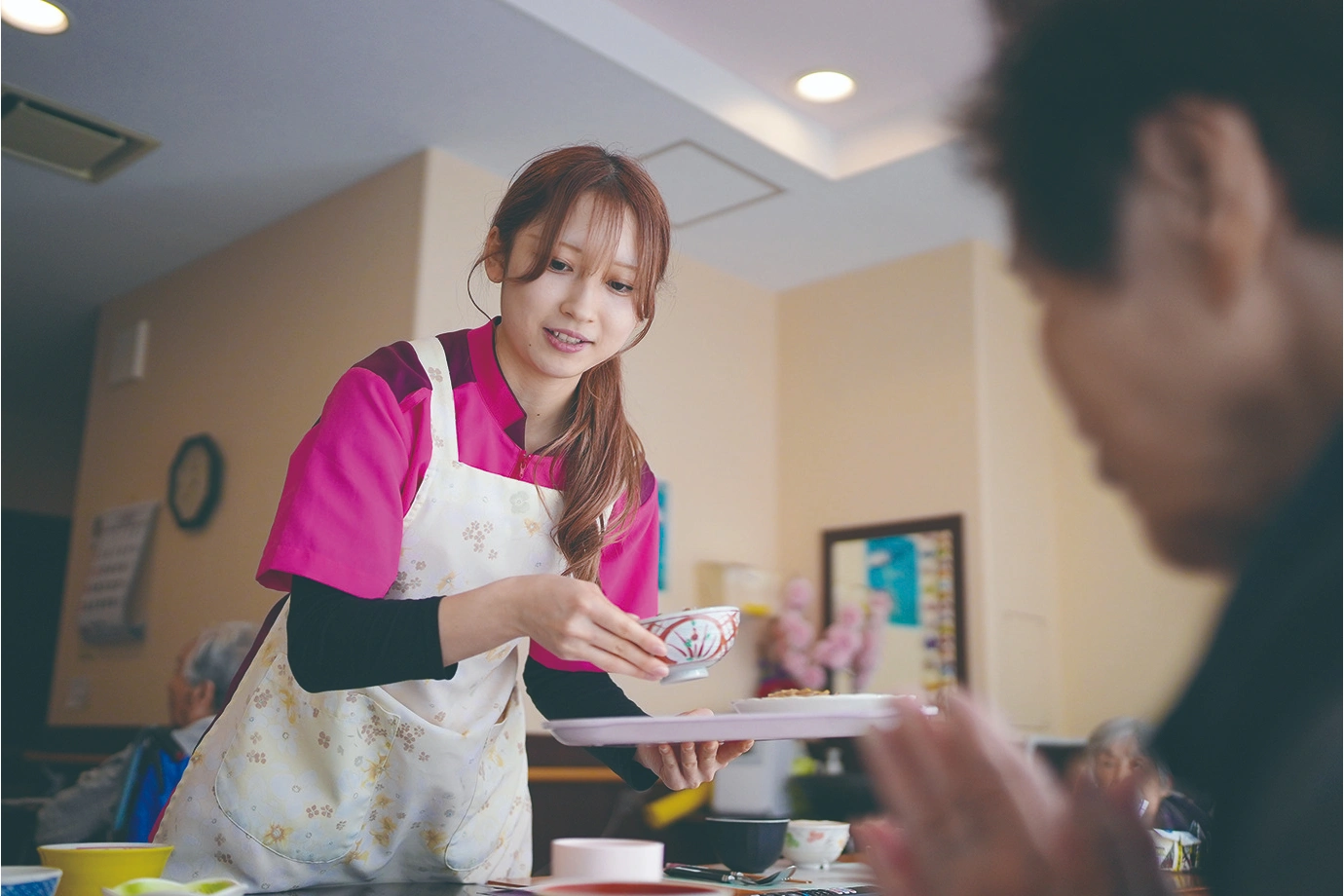 簡単そうに見える「食事の介助」。実は高齢者の食べ物を飲み込む力は、私たちの想像をはるかに超えて弱くなっています。お客様一人ひとりの状況を把握し、口から食べる大切さを伝える重要なお仕事です。