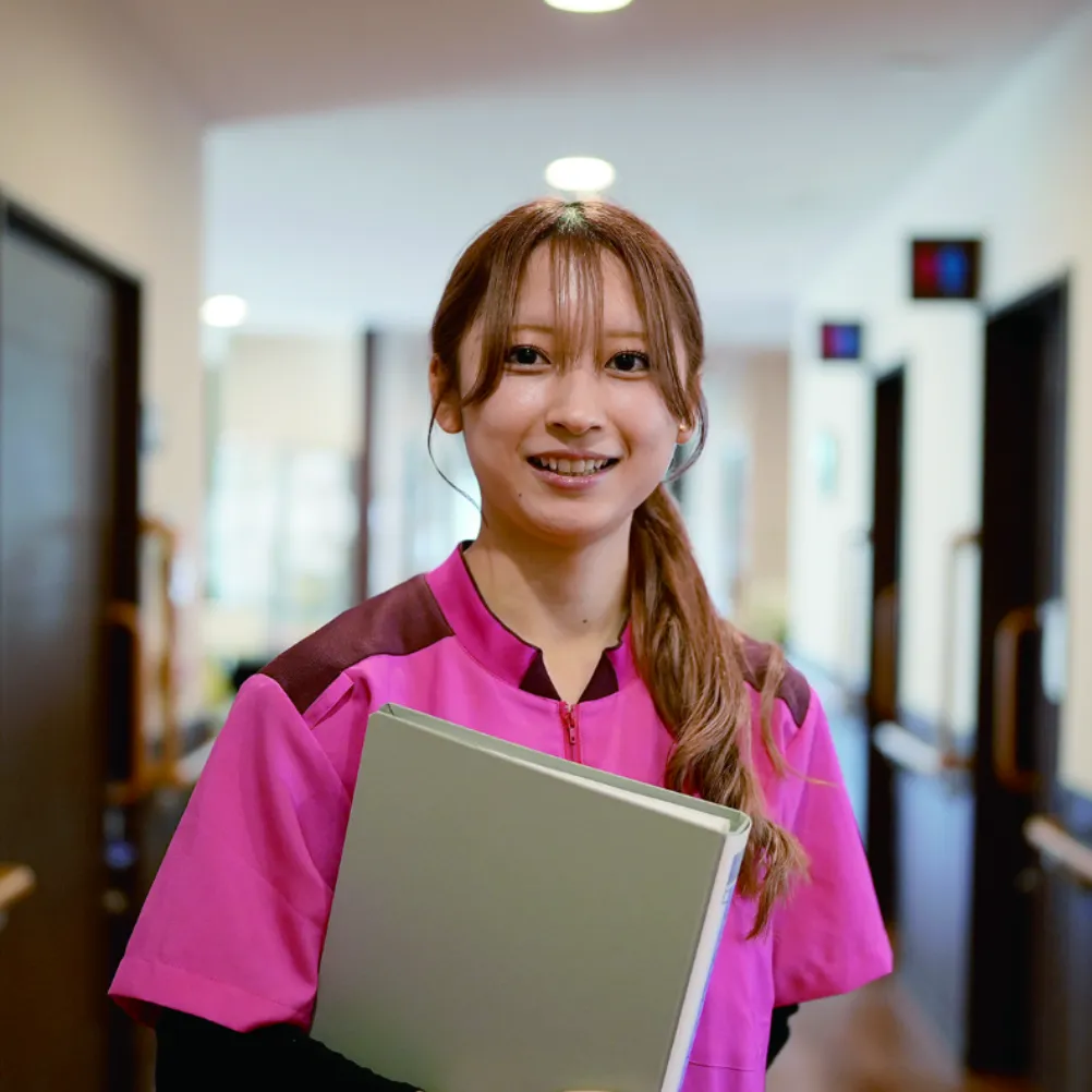 長寿の里は高卒新卒を多く迎えており、入社後は副主任・主任へと着実に成長できる職場です。18 歳での就職に不安があっても、頼れる先輩が支えてくれるので安心してスタートできます。介護は「ありがとう」をもらえる、やりがいのある仕事です。
