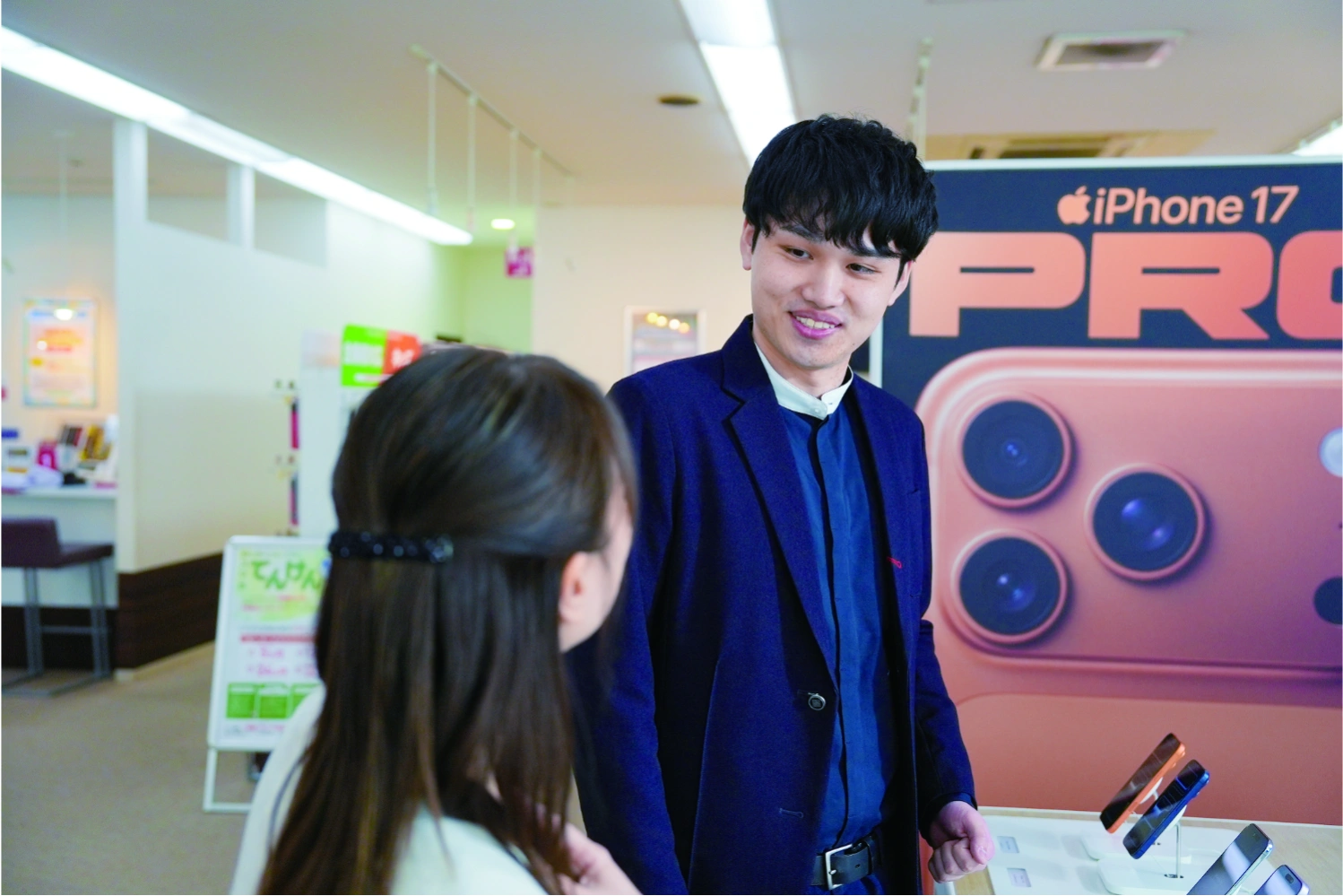 今や生活に欠かせないスマートフォンを通して、地域の皆さんの「困った」を解決するお仕事です。 詳しくなくても大丈夫。ドコモには手順に沿ったマニュアルが整っており、現場では先輩スタッフがしっかりフォローするので、安心してスタートできます。 接客力やコミュニケーション力が自然と身につき、人として成長できる環境です。 お客様から直接「ありがとう」の言葉をいただける、やりがいのあるお仕事。 人と話すことが好きなスタッフが多いです!