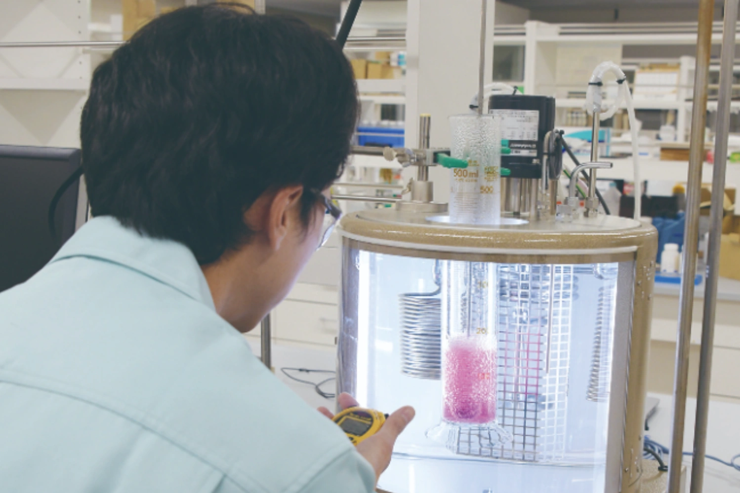 私たちはお客様のニーズにお応えした性能を付与すべく開発・改良を行い、新しい製品を提供し続けてきました。「技術」を広義で捉え、調査や調達、機器の整備など生産のあらゆるプロセスにおいて、新しい「技術」を模索し、創出していくことが肝要だと考え、実践しています。この「技術創出」の精神で培った研究開発により、カーケミカル用品の性能向上に注力しています。