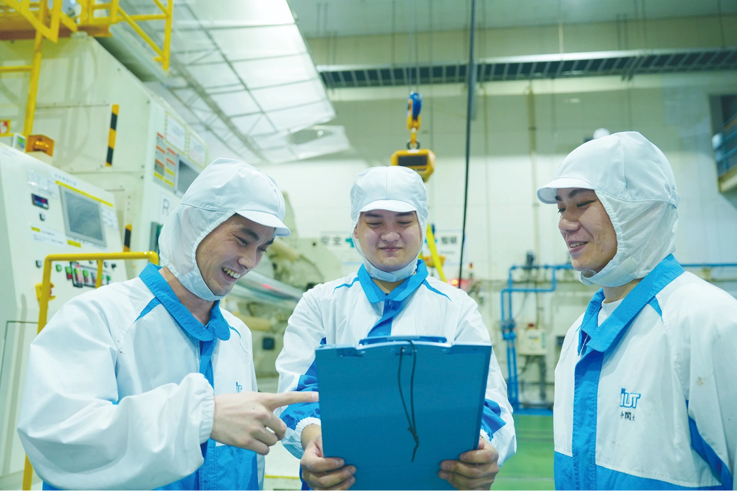 工場は24 時間稼働しており、班ごとに交替勤務を行なっています。出社時には工程の確認と前の班から生産状況などの引継ぎを受け、その日の業務を把握。勤務終了時には次の班へ引き継ぎを実施。班同士の円滑なコミュニケーションにより、残業が発生しにくく、メリハリのある働き方ができる環境です。