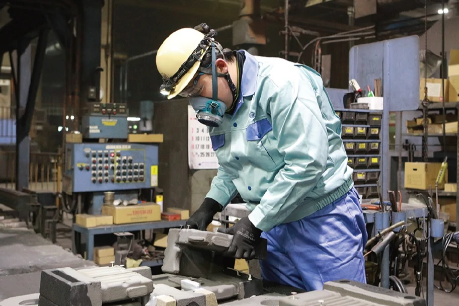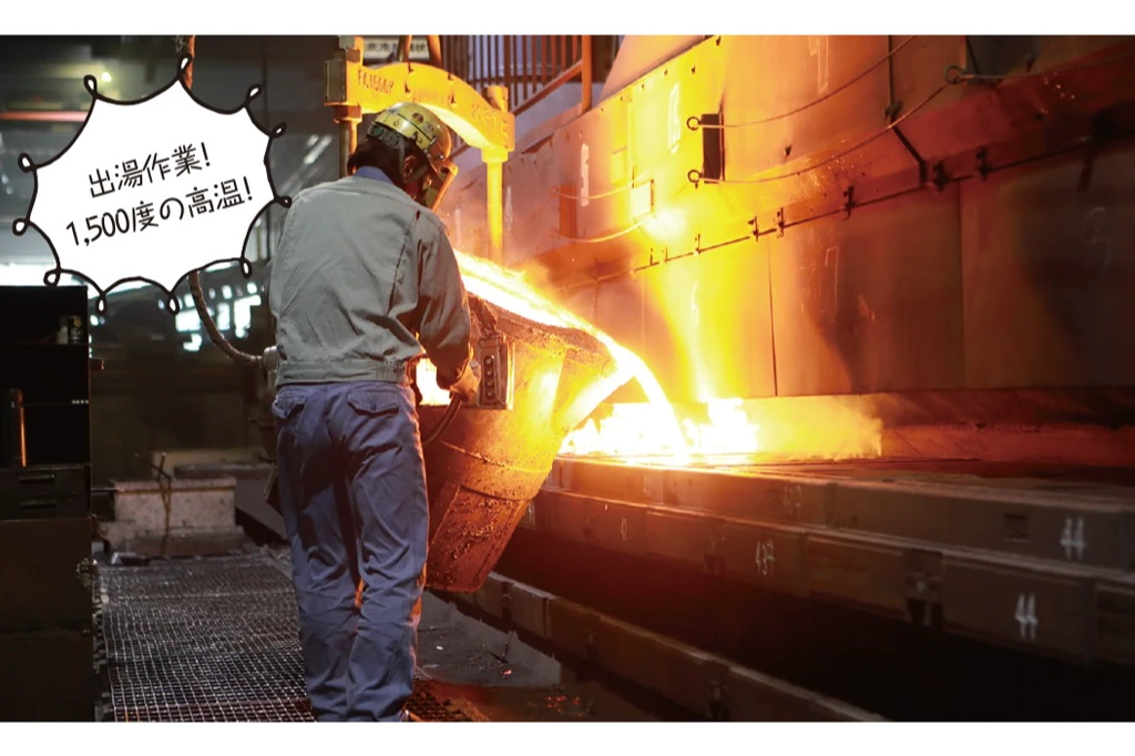 私たちの会社では、農業機械や発電機などのエンジンに使われる「銑鉄鋳物(せんてついもの)」を製造しています。鉄を1,500度以上の高温で溶かし、専用の型に流し込んで冷やすことで、頑丈で長持ちする部品を作ります。「自分が作った部品が、世界中の機械を動かしている」そんなやりがいを感じられるのが、私たちの仕事です。