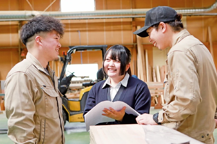 CADオペレーターが依頼された設計図に従って加工に必要な部材を一本一本データ入力し、綿密な打ち合わせを重ねて細かなご要望をお伺いします。お客様による加工確認、ご承認をいただいた後、加工機械用データを作成し、それぞれの加工機でお互いにチェックしあいながら精度の高い製品に仕上げます。自分が手掛けた建物が実際に形になり、長く残るモノづくりに携わることで達成感を味わえるやりがいのある仕事です。