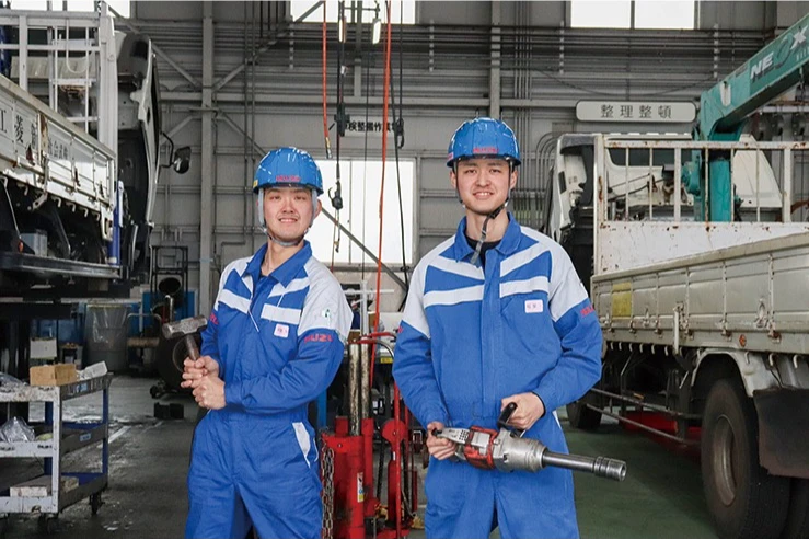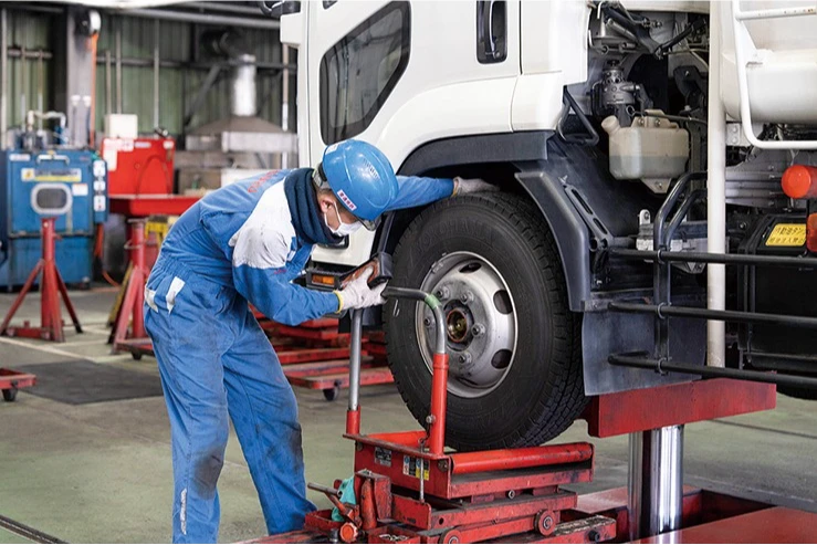 大型車両の整備はチームを組んで行います。作業を分担し、協力して効率的に整備を進めていきます。チーム内での情報共有と連携が、迅速で正確な作業を実現します。