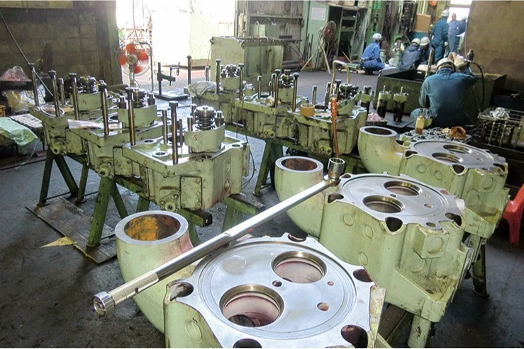 1,000〜2,000点の部品から出来ている船のエンジンの分解、整備、組立を丁寧に行っています。