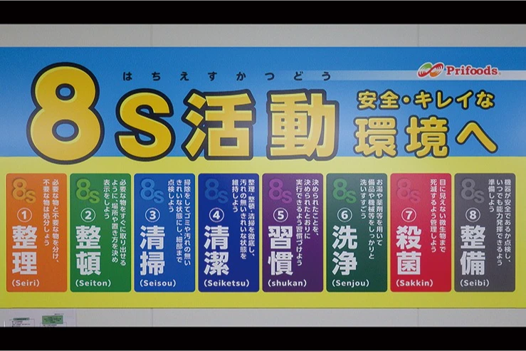 「整理・整頓・清掃・清潔・習慣」従業員が常日頃から心掛ける5S活動です。「洗浄・殺菌・整備」を加えた8S活動をしている工場もあります。