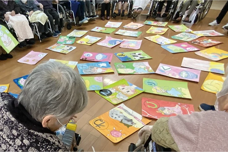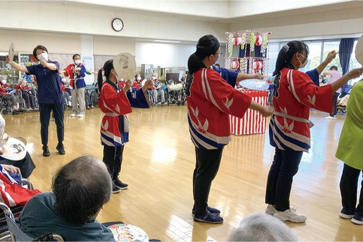 敬老会で入居者の方に楽しんでいただく余興を職員がグループに分かれて思考し行います。アイデアを出したり練習を行うことにより、職員間の団結力が高まります。