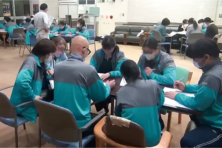 月1回全職員が共通の研修受講します。各研修の講師は職員がそれぞれ担当し、収録・研修のWeb配信も職員が行います。時には、外部講師に来ていただき受講します。