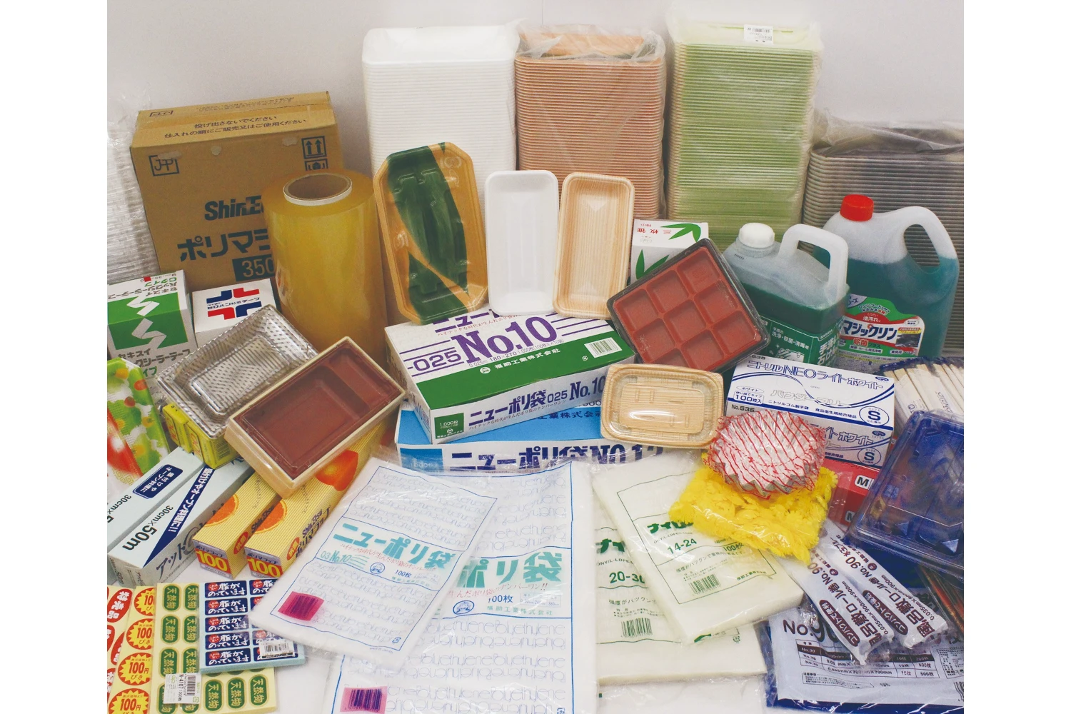 今日では包装資材を中心に、衛生商品、販促ツール、包装機器、物流機器、厨房機器と、フィールドはさらに広がっています。