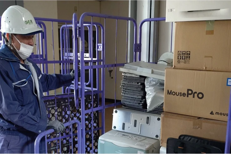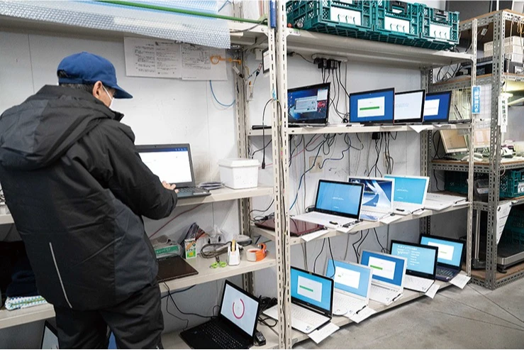 学校で使われる学習用端末などを訪問して回収します。データを安全かつ完全に抹消した後、中古パソコンとして再生したり、資源として再利用したりしています。