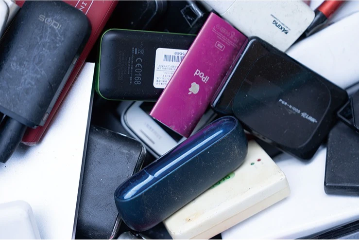 集まった物品を品種や素材ごとに分別し、リサイクルの精度を高めます。また、バッテリーを内蔵した製品は火災の危険があるため、慎重に取り外して処理します。