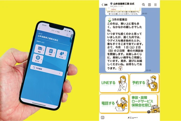 営業時間外でもお客様ご自身がLINEから予約できたり、工場のスケジュール管理も出来るイケてるシステム!!仕事がすごく楽しくなったんだ!